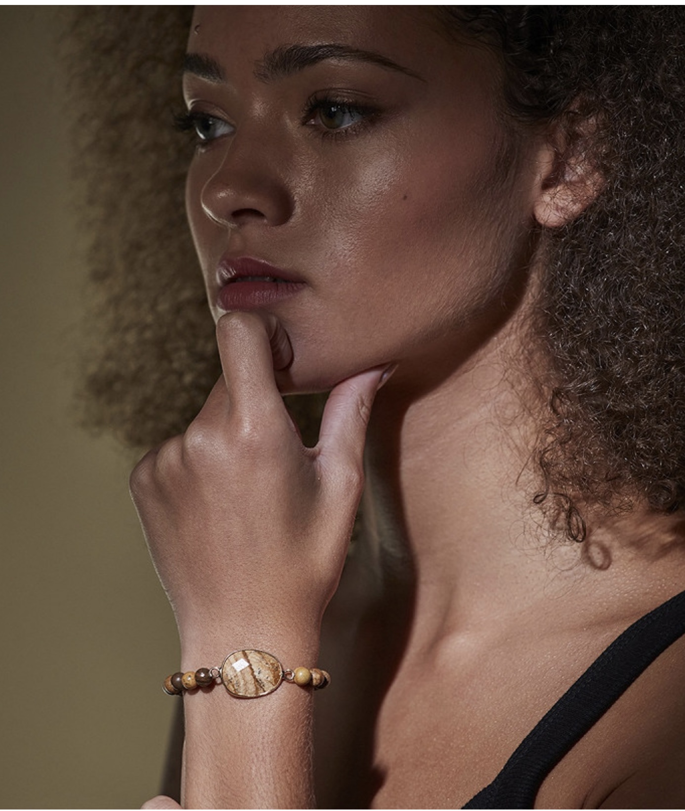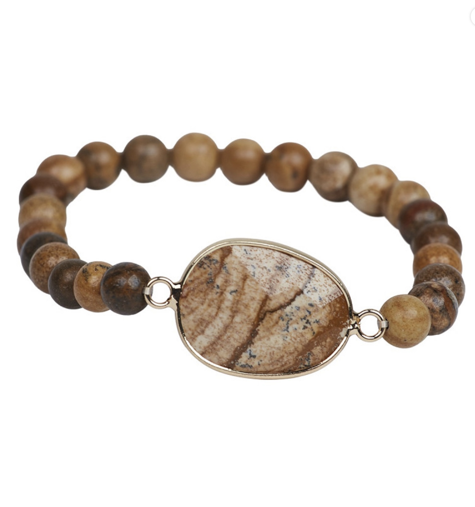 Braunes Armband mit Gummizug und einem schönen Stein.