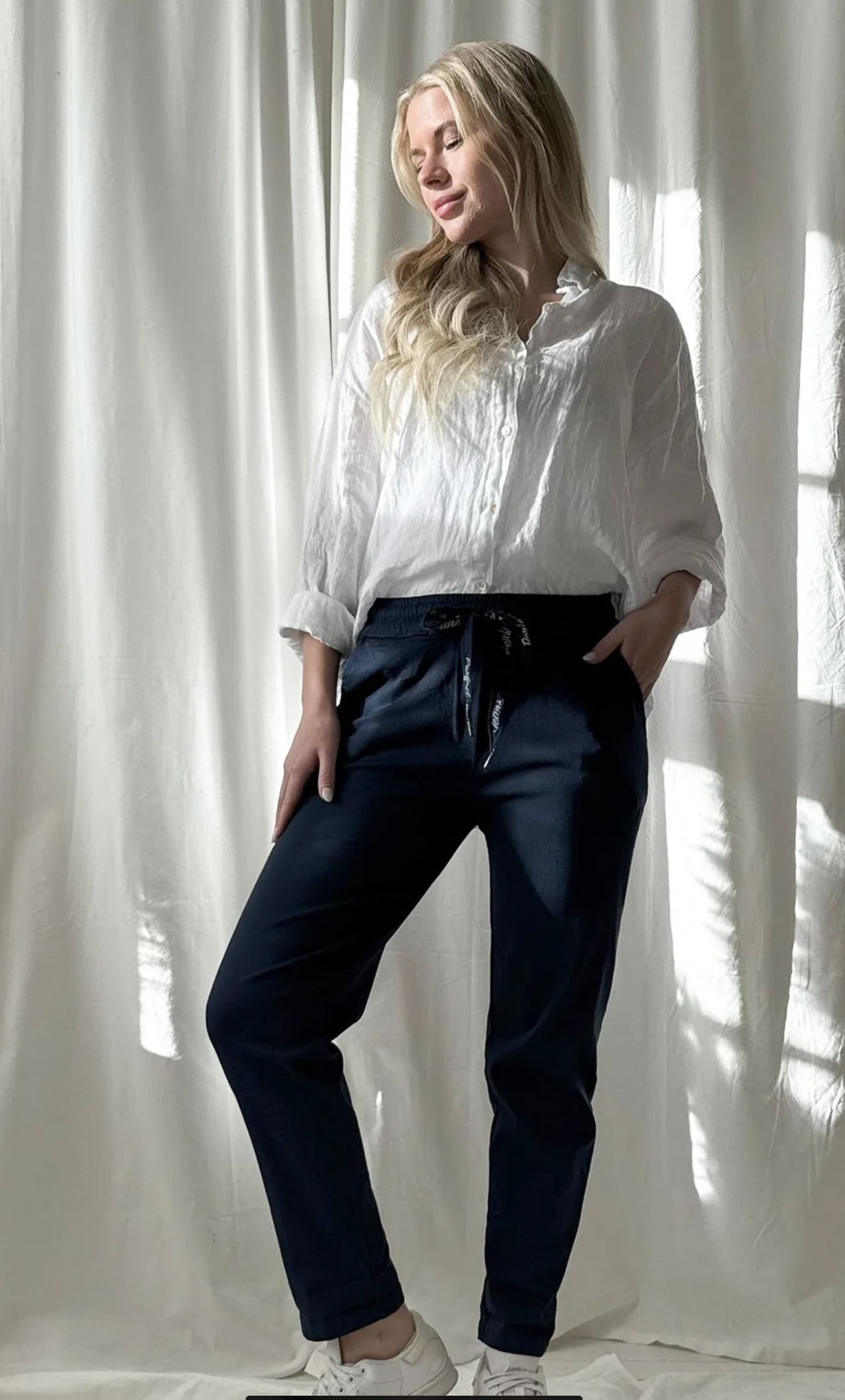 Tolle Hose mit Gummibund in dunkelblau vom finischen Modelabel Bypias. Diese Hose ist exrem bequem und dehnbar. Man fühlt sich wie in einer Jogginghose, und ist trotzdem lässig angezogen Gr. S/M, Material: 60% Cotton, 20% Viscose, 10% Elastane, 10% Nylon
