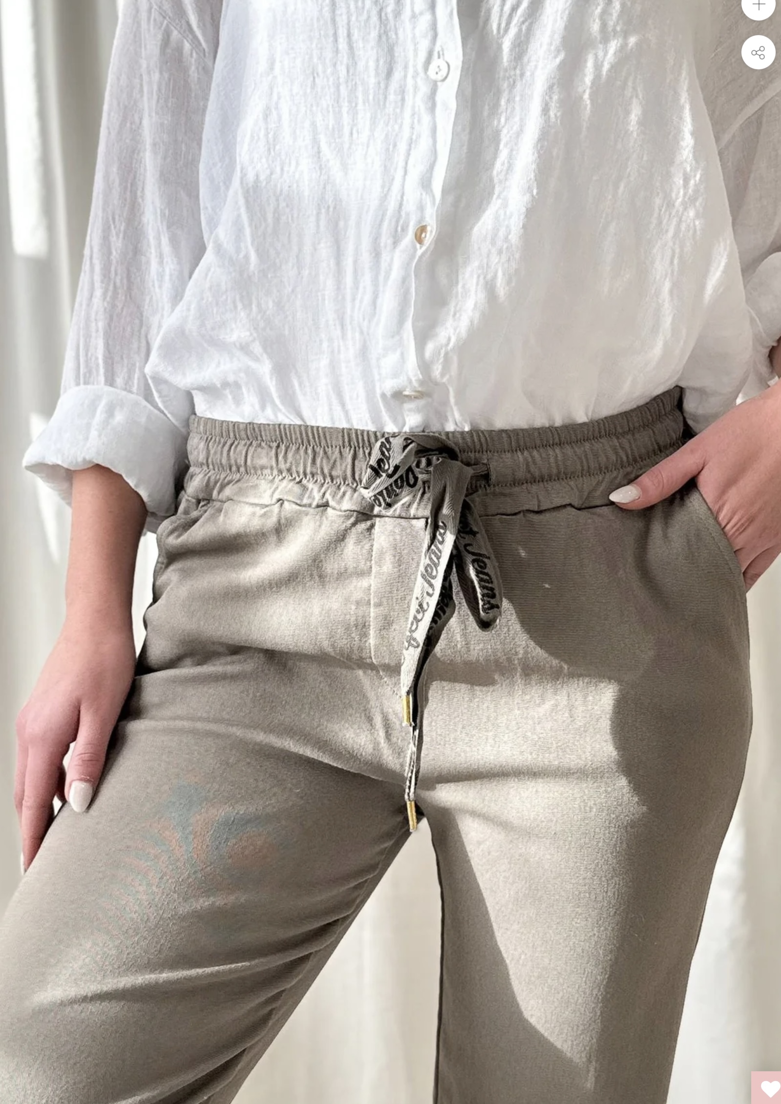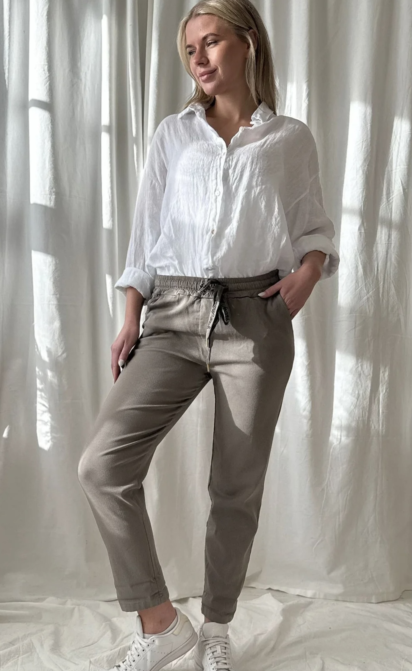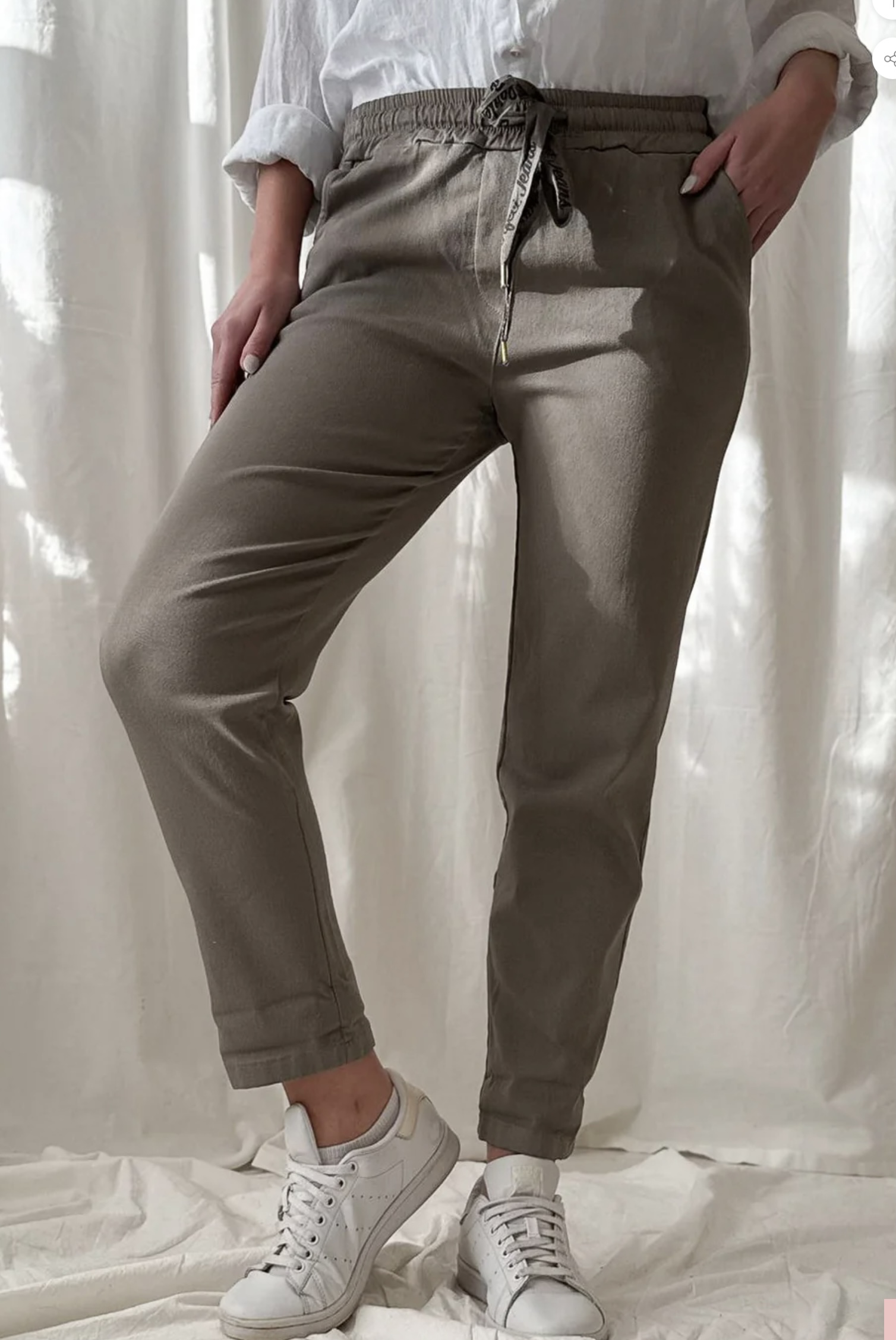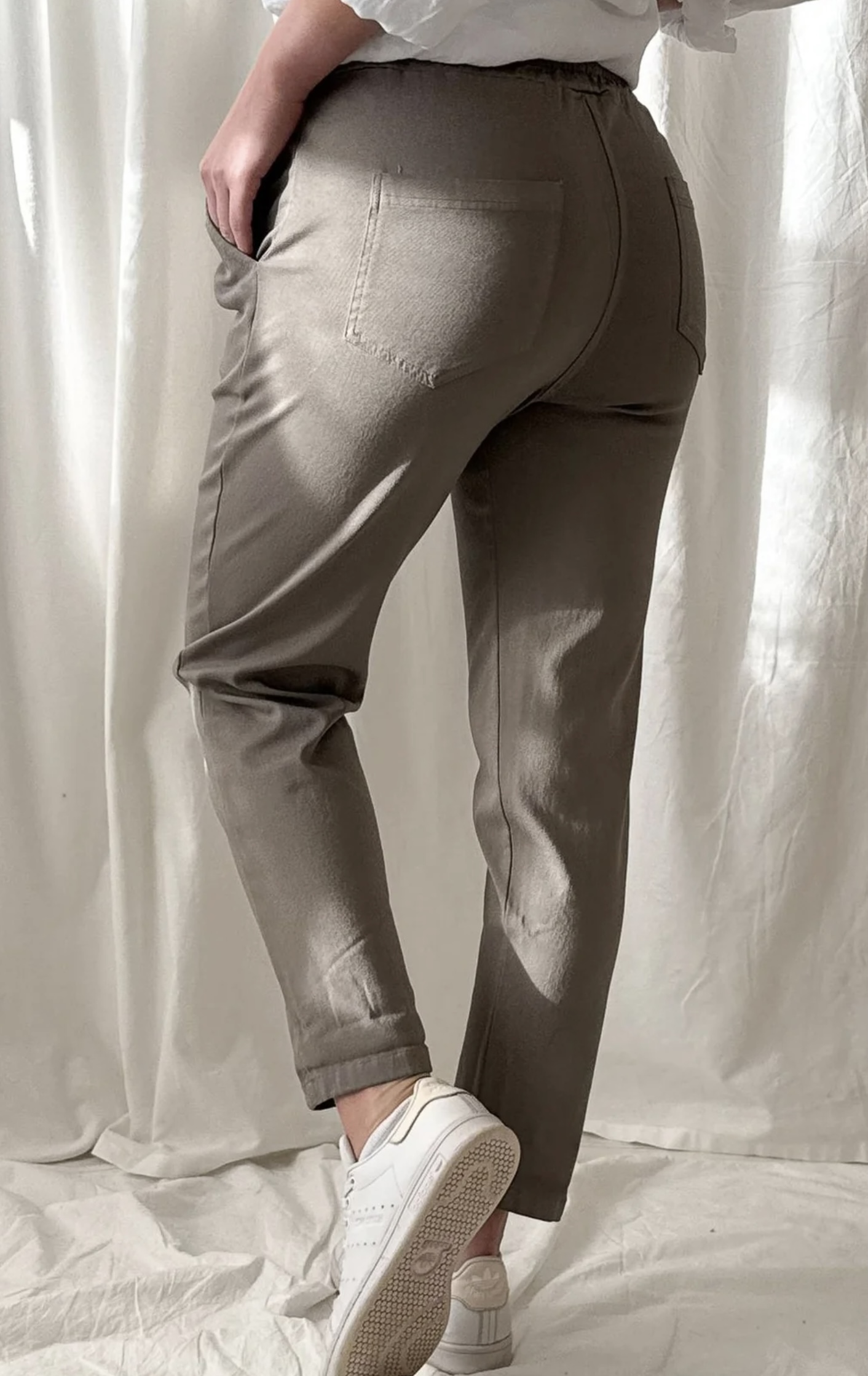 Tolle Hose mit Gummibund in der Farbe Taupe vom finischen Modelabel Bypias. Diese Hose ist extrem bequem, sehr dehnbar, und man fühlt sich leicht wie in einer Jogginghose, und ist trotzdem lässig angezogen. Material: 60% Cotton, 20% Viscose, 10% Nylon, 10% Elastan, Gr. S/M