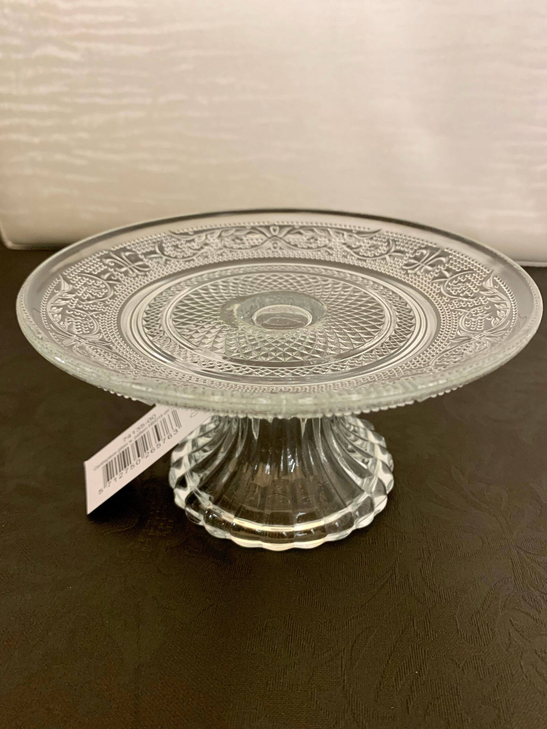 Kleine, süsse Glasplatte auf Fuss, H 8cm, D14,5cm für kleine Leckereien, Pralinen, usw.