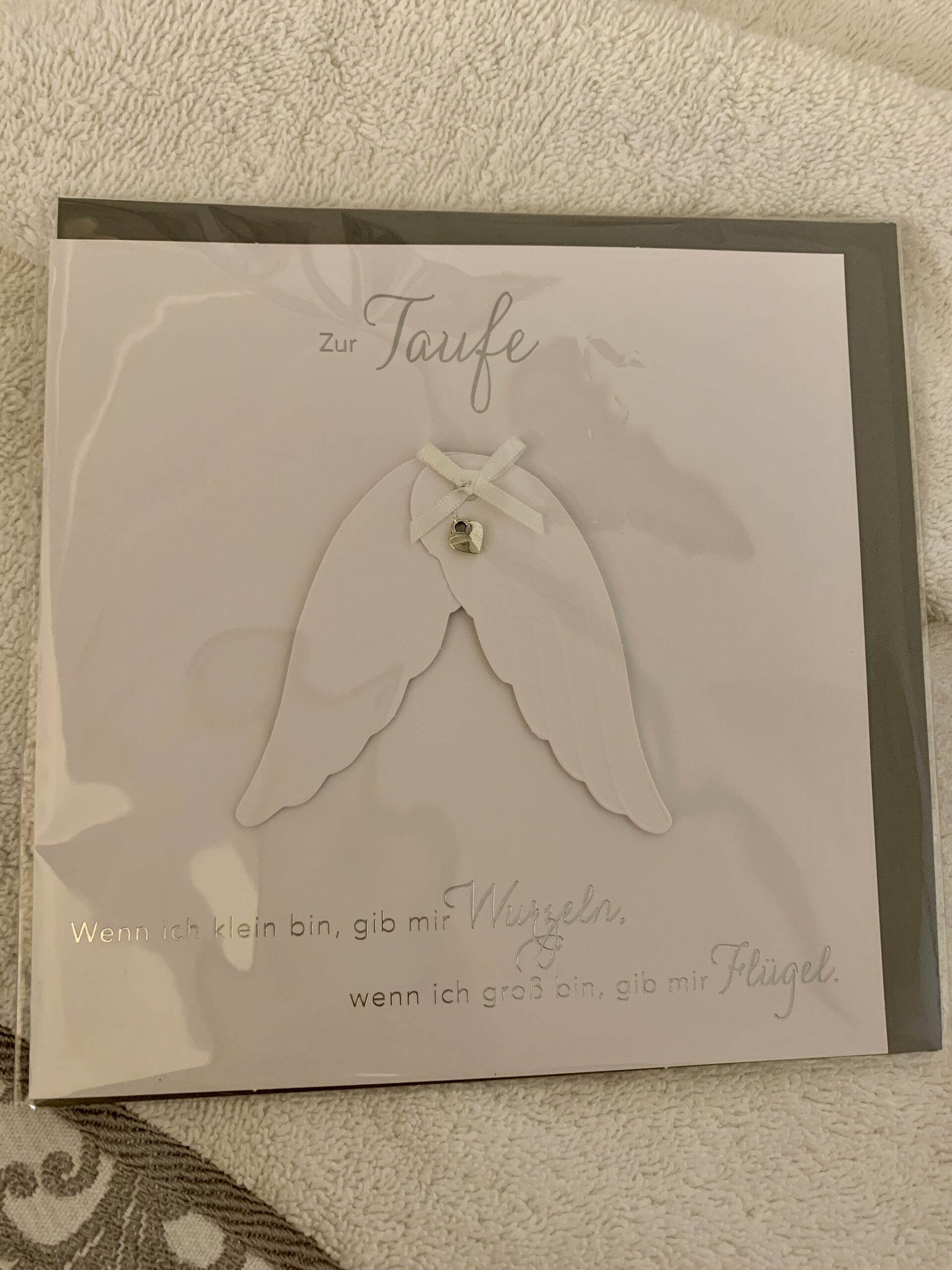 Sehr edle Karte mit 3D Flügel und Herz und schönem Spruch. 15,5x16cm