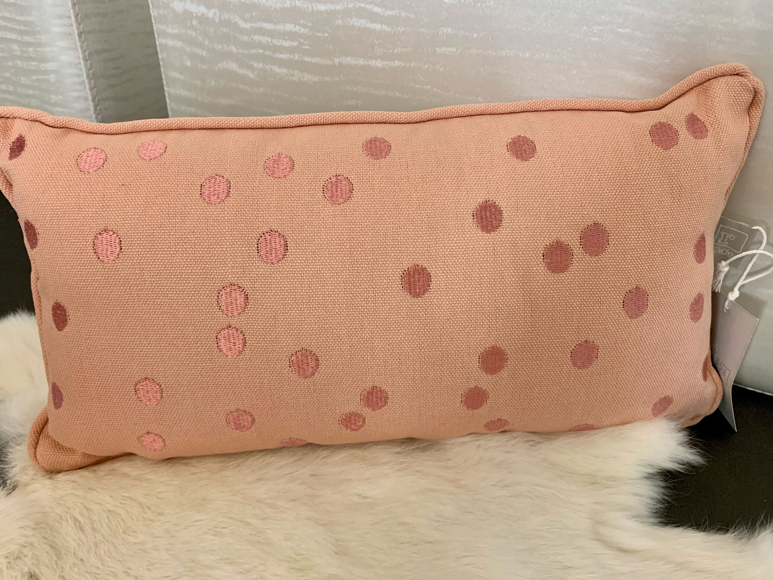 Kleines, süsses Kissen von Räder Design, eine Seite mit Spruch, andere Seite mit Punkten, Farbe apricot, L33cm, H18cm