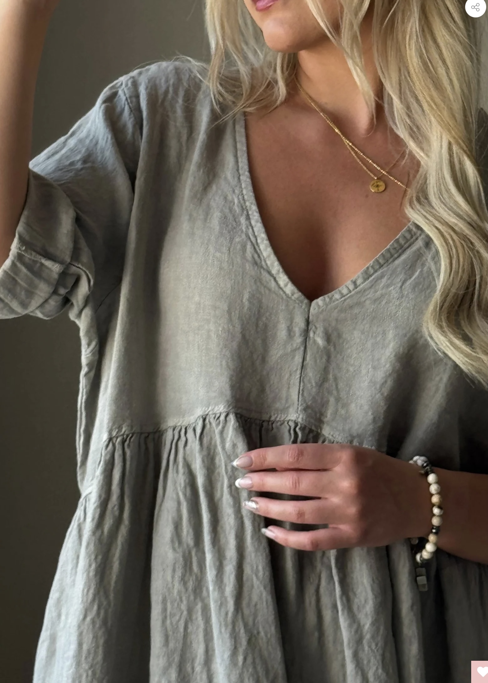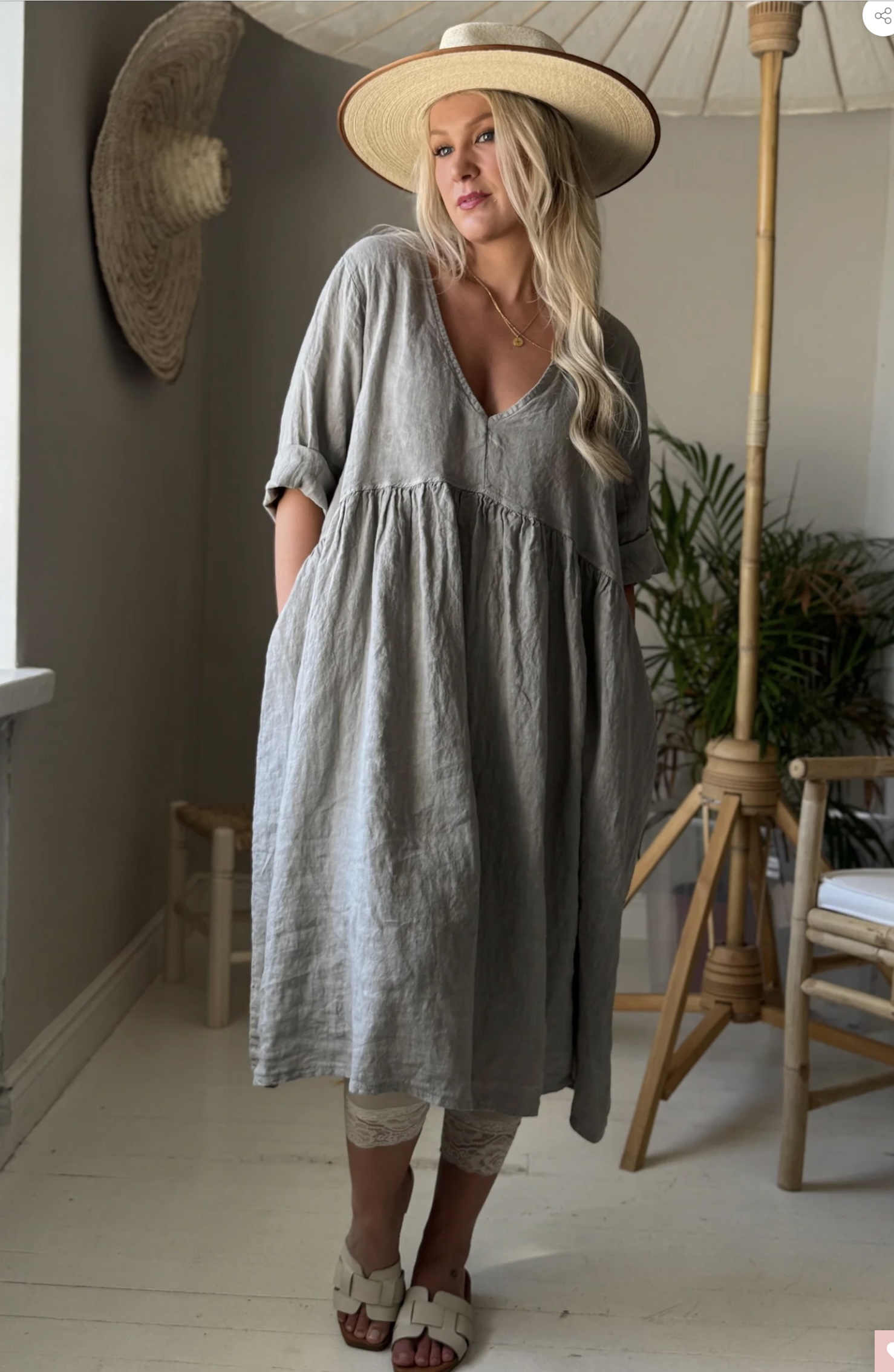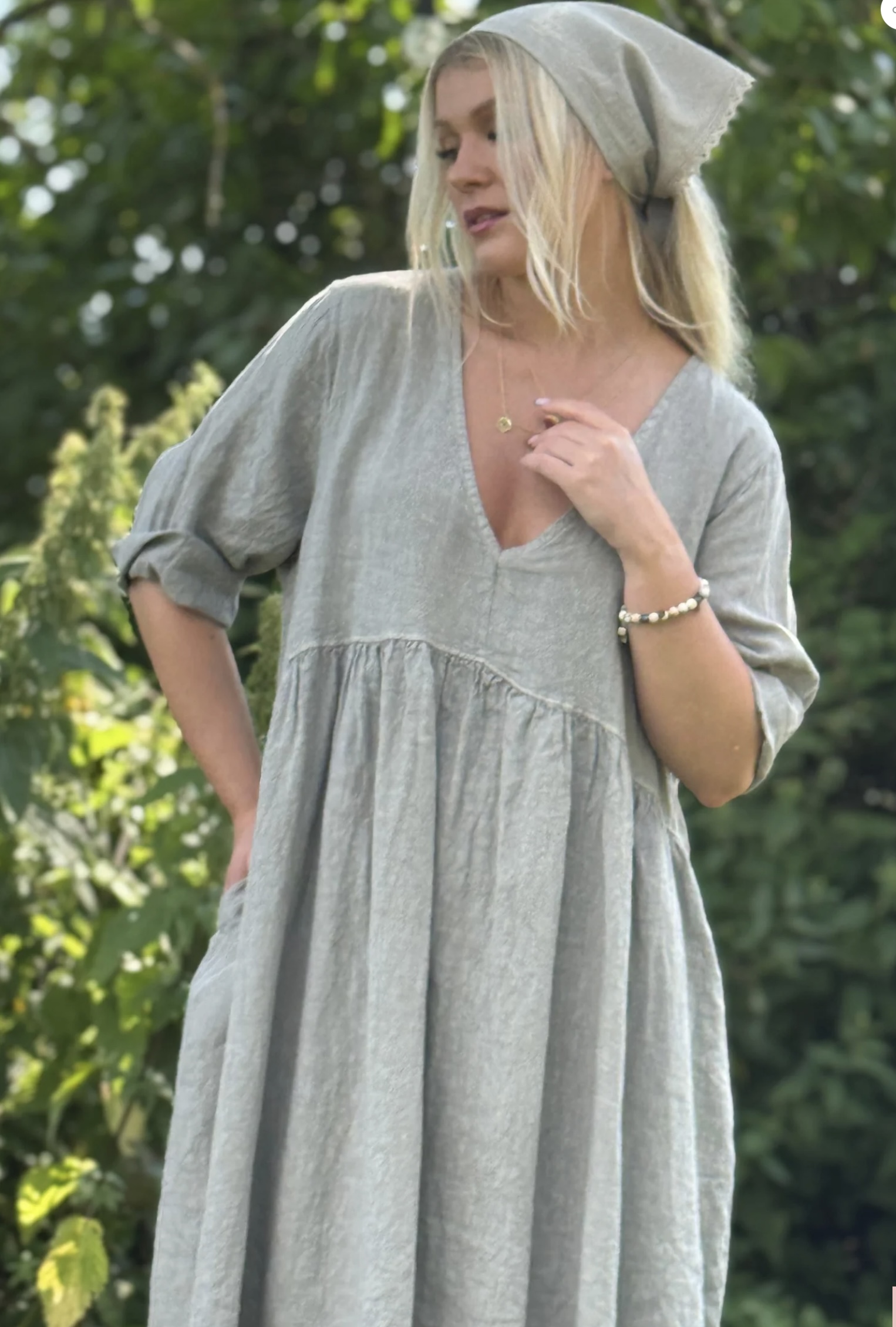 Leichtes Leinenkleid in mittlerer Länge vom finischen Modelabel Bypias, made in EU, one size