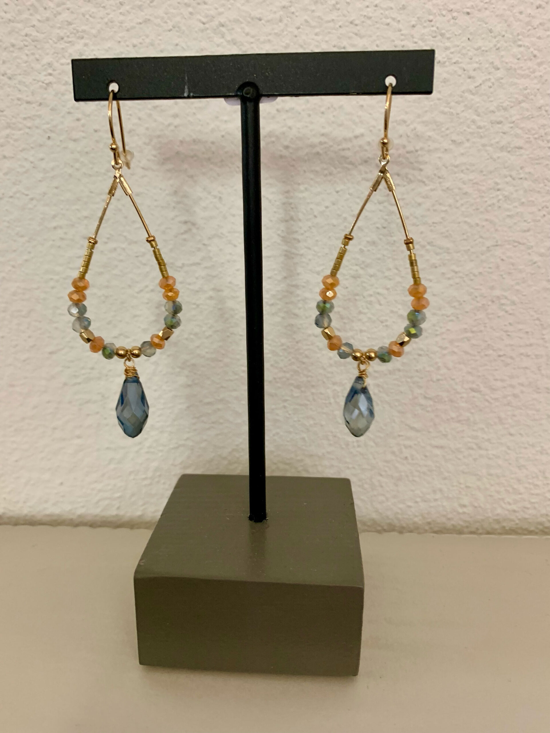 Ohrhänger Leah, Modeschmuck von moshi, 8cm, blau, orange, goldfarbig