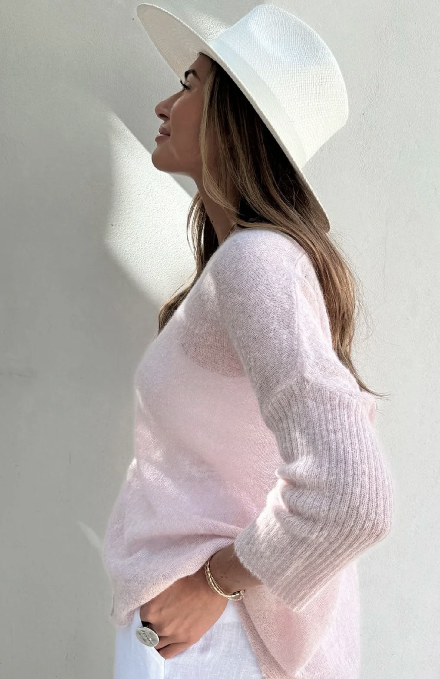 Wunderbar leichte und trotzdem wärmende Weste in hellrosa mit 62% Alpaca-Wolle vom finischen Modelabel Bypias. ONE SIZE
